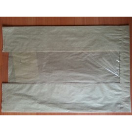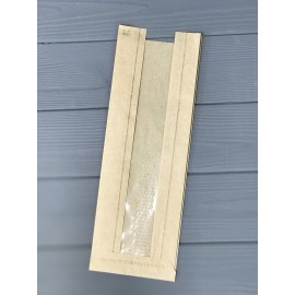 Паперовий пакет з прозорою вставкою для упаковки бутербродів, макаронних виробів, солодощів, печива, асортименту кондитерських виробів.