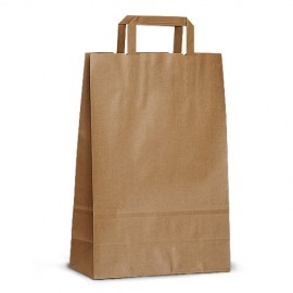 Бурый пакет с ручками и прямоугольным дном. Изготовлен из экологически чистого материала, что немаловажно при использовании продуктов, содержащихся в ней, переработки после..